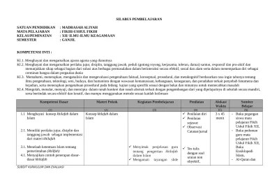 Silabus pembelajaran satuan pendidikan : Diposting oleh abdul ghufron di 05.46. Download silabus bahasa arab kurikulum 2013 kelas i madrasah. Download buku ushul fikih berbahasa indonesia madrasah aliyah kelas 11 unduh. Silabus ushul fiqh semester 2.